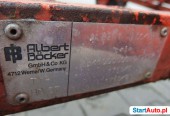 Winda drabina dekarska BOCKER HD37 z dużym koszem aluminiowym. Na przyczepie, rok produkcji 1986, wysokość 37 m, 3-wysuwy aluminiowa. Sprowadzona z Niemiec. Posiada instrukcję obsługi. Opis techniczny: – wysokość całkowita po rozłożeniu 37 m, – jednostka napędowa Honda ( benzyna), – rozruch silnika ręczny i elektryczny, – długość po złożeniu drabiny do transportu 9,80 m, – długość całkowita z dyszlem 11,3 m, – długość dyszla całkowita 1,5 m, – platforma robocza wózka jezdnego ruchoma, – platforma o wymiarze (D/S/W) 130 x 50 x 50, istnieje możliwość rozłożenia boków powiększając powierzchnię roboczą, – platforma przystosowana do transportowania dużych gabarytów np. meble, okna, elementy konstrukcyjne i itp. – na wyposażeniu rama opuszczana do dołu w celu łatwiejszego umieszczenia na platformie np. dachówki, ciężkich elementów konstrukcyjnych i itp. – koła w rozmiarze R14, – zmienny kont ustawienia dyszla pod zaczep auta, – podpory dyszla z kołem manewrowym, – hamulec ręczny, – cztery podpory, – instalacja elektryczna, – waga 1750 kg. Cena netto: 11.900 zł Posiadamy w ofercie różne drabiny dekarskie w ilości 10 sztuk – cena już od 6.900 zł