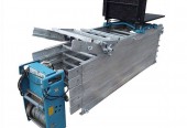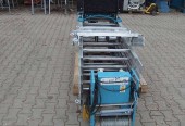 Drabina winda dekarska GEDA – LIFT 200 (131) długość 14 metrów z napędem linowym – to najpopularniejszy model urządzenia do transportu pionowego. Urządzenie kompletne, sprawne – GOTOWE DO UŻYTKU Udźwig: 200 kg Rok produkcji: 1995 Zasilanie: 230 V, Moc: 1.3 kW, Zestaw składa się: 5 elementów szynowych podstawowych 2 metrowych 1 element dolny 2 metrowy 1 element szynowy 1 metrowy załamanie szyn 20-45 stopni 1 metr przewodowy pilot obsługi windy dekarskiej dodatkowa krańcówka z przeznaczeniem wyłączenia wózka transportowego na zadaną wysokość. platforma robocza o wymiarze D/S/W: 84 x 68 x 38 cm. Na innych Naszych aukcjach Istnieje możliwość dokupienia elementów przedłużających , 2m lub 1m , załamania , wózka , podpory teleskopowej szyn , lub innych elementów drabiny. Cena netto: 11.900 zł