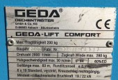 Drabina winda dekarska GEDA – LIFT 200 Comfort (156) długość 16 metrów z napędem linowym – to najpopularniejszy model urządzenia do transportu pionowego. STAN BARDZO DOBRY. Urządzenie kompletne, sprawne – GOTOWE DO UŻYTKU Udźwig: 200 kg Rok produkcji: 2000 Zasilanie: 230 V, Moc: 1.3 kW, Zestaw składa się: 6 elementów szynowych podstawowych 2 metrowych 1 element dolny 2 metrowy 1 element szynowy 1 metrowy załamanie szyn 20-45 stopni 1 metr przewodowy pilot obsługi windy dekarskiej dodatkowa krańcówka z przeznaczeniem wyłączenia wózka transportowego na zadaną wysokość. platforma robocza o wymiarze D/S/W: 84 x 70 x 39 cm. dodatkowo boczne zabezpieczenia, w postaci siatki Na innych Naszych aukcjach Istnieje możliwość dokupienia elementów przedłużających , 2m lub 1m , załamania , wózka , podpory teleskopowej szyn , lub innych elementów drabiny. Cena netto: 13.600 zł