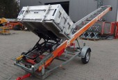 Winda drabina dekarska EMMINGHAUS Pionier 651 Na przyczepie, wysokość 13m, 1wysów aluminiowy wysuwany mechanicznie za pomocą korby z zapadką, udźwig 200 kg, zasilanie silnik elektryczny 230 V (1.2 KW). Sprawna technicznie – gotowa do użytku. Sprowadzona z Niemiec. Winda posiada dokumentację do rejestracji. Opis techniczny: – wysokość całkowita po rozłożeniu 13 m, – jednostka napędowa silnik elektryczny 1.2kW (wózek jezdny), – podnoszenie wysięgnika windy ręczne (kolba z zapadką), – rozsuwanie wysuwu ręcznie (kolba z zapadką), – długość po złożeniu drabiny w jeden segment 7.15 m, – długość całkowita z dyszlem 7.65 m, – dyszel 50 cm – zaczep kula, – szerokość całkowita 1,5 m, – aluminiowa platforma robocza wózka jezdnego o wymiarze D/W/S: 125 x 90 x 40 (cm), z możliwością powiększenia platformy z trzech stron przez rozłożenie bortnic. Duża platforma zapewnia bezpieczne transportowanie towarów o dużych gabarytach. – możliwość regulacji kąta / położenia platformy, – koła w rozmiarze R13, – waga 600 kg. Cena netto: 8.900 zł