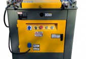 Giętarka zaginarka do prętów zbrojenia drutu 42 Giętarka / zaginarka model 42 – służąca do gięcia prętów zbrojeniowych, drutu gładkiego, drutu żebrowanego, pręta kwadratowego, płaskownika, itp. – giętarka o zwiększonej wytrzymałości – moc 3 kW z hamulcem – minimalna / maksymalna średnica prętów okrągłych: 4mm / 42mm – prędkość obrotu tarczy 12 r / min – w zestawie znajdują się komplet trzpieni widocznych na poniższym zdjęciu. – wymiary: 81 × 76 × 86 cm – masa około 330 kg – dostarczone urządzenie uzupełnione jest w materiały eksploatacyjne i jest gotowe do natychmiastowej pracy – sterowanie przy pomocy przycisku nożnego lub za pomocą przycisków na obudowie – możliwość pracy automatycznej lub manualnej – po osiągnięciu ustawionej pozycji gięcia tarcza automatycznie wraca do pozycji wyjściowej co zapewnia zwiększoną wydajność i wygodę obsługi – wbudowane przyciski bezpieczeństwa STOP (zdjęcia poglądowe)