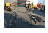 Rusztowania rusztowanie dachowe kominowe składan Rusztowanie dachowe Rusztowanie dachowe lub kominowe może być stosowane na dachach o spadku między 30˚ i 60˚. Jest to rusztowanie robocze wolnostojące zbudowane z lekkich elementów stalowych. Można z niego swobodnie wykonywać prace do wysokości 4,5 m, gdyż podesty zawieszane są co 25 cm. Opis produktu: – max. wysokość po złożeniu dwóch przęseł 4,5 m, – wysokość przęsła 2,10 m, – szerokość drabiny 44 cm, – wysokość między stopniami 25 cm, – ilość stopni na jednym elemencie 7 szt, – regulowany kąt roboczy, – max szerokość robocza po rozłożeniu całego zestawu 2,30 m, – przykręcone kantówki do elementów stalowych (anty-poślizg), – na wyposażeniu stelaż do komunikacji i 2 szt słupki zabezpieczające. Bortnice i blat komunikacyjny tylko element pokazowy. Cena netto: 3.490 zł