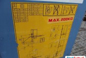 Winda budowlana – wyciąg GEDA 200Z 13 m. Winda o dużej prędkości podnoszenia – dźwig towarowy GEDA 200Z to wydajne urządzenie do transportu pionowego. Dźwig charakteryzuje się udźwigiem do 200kg z maksymalną wysokością rozbudowy do 35m. Profesjonalna winda jest niezbędna np. przy montażu rusztowań – zapewniając szybki i bezpieczny transport elementów oraz możliwość zwiększania wysokości dźwigu. Stosunkowo niewielka waga i wymiary składowych części GEDA 200Z powodują, że transport może odbywać się na przyczepce lub w samochodzie dostawczym. Masa własna około 200 kg Udźwig 200kg Wysokość transportowa 13 m ( w tym 6 elementów po 2m ) – możliwość szybkiego demontażu do transportu. Maszyna sprawna gotowa do użytku. Opis techniczny: – zasilanie elektryczne 230V, – prędkość podnoszenia 25 m/min, – krańcówki regulujące max. podnoszenie i opuszczanie – duża platforma robocza o wymiarze D/S/W: 84 x 150 x 110 cm, – kosz po zwolnieniu dźwigni umożliwia zmianę położenia -obrót, – opuszczany podest ryflowanyna platformie w celu łatwego podjazdu, – podest z blachy antypoślizgowej, – automatyczne sprzęgło, – na wyposażeniu pilot (opuszczanie – podnoszenie kosza np z góry), – elementy konstrukcyjne o długości 2,00m w ilości 6 szt m, – całkowita wysokość po złożeniu 13 m, – większość konstrukcji wykonana z aluminium (lekkie elementy), – na wyposażeniu długi przewód zasilający, – na wyposażeniu łącznik do kotwienia. – waga około 270 kg, Cena netto: 17.900 zł