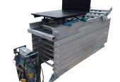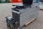 Drabina winda dekarska GEDA – LIFT 200 (131) długość 18 metrów z napędem linowym – to najpopularniejszy model urządzenia do transportu pionowego. Urządzenie kompletne, sprawne – GOTOWE DO UŻYTKU Udźwig: 200 kg Rok produkcji: 1995 Zasilanie: 230 V, Moc: 1.3 kW, Zestaw składa się: 7 elementów szynowych podstawowych 2 metrowych 1 element dolny 2 metrowy 1 element szynowy 1 metrowy załamanie szyn 20-45 stopni 1 metr przewodowy pilot obsługi windy dekarskiej dodatkowa krańcówka z przeznaczeniem wyłączenia wózka transportowego na zadaną wysokość. platforma robocza o wymiarze D/S/W: 84 x 68 x 38 cm. Na innych Naszych aukcjach Istnieje możliwość dokupienia elementów przedłużających , 2m lub 1m , załamania , wózka , podpory teleskopowej szyn , lub innych elementów drabiny. Cena netto: 12.900 zł