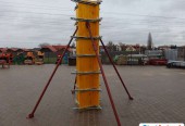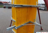 Szalunek słupowy o wysokości 3 m. Uniwersalny szalunek słupowy z możliwością wykonywania słupów o przekrojach kwadratowych i prostokątnych. Przez znaczną szerokość płyt i odpowiednie profile (obejmy) istnieje możliwość wykonania słupa o różnej rozpiętości ramienia od 15 do 45 cm – przy regulacji skoku co 5 cm. Maksymalna wysokość słupa osiąga 3 m i w tym celu niezbędne jest zastosowanie czterech płyt (sklejka trójwarstwowa) w rozmiarze 50 x 300 cm i siedmiu kompletów profili stalowych rozmieszczonych w odpowiednich odległościach. Obejmy z blokadą klinową tzw. profile stalowe (ocynkowane ogniowo) na zmontowanym słupie połączone są ze sobą po cztery w jednym komplecie. Do zabezpieczenia ustawionego słupa należy wykorzystywać przynajmniej cztery podpory pionujące. Cały zestaw bardzo prosty do ustawienia i złożenia a przede wszystkim praktyczny w zastosowaniu. Dane techniczne: – Rozmiar od 15 -45 cm (regulacja skokowa co 5 cm), – Wysokość 3 m, – Maksymalne obciążenie (parcie) betonu 40kN/M². Korzyści: – Prosty i szybki montaż, – Po złożeniu zajmuje mało miejsca, – Uniwersalność w zastosowaniu. W skład zestawu wchodzi: – 4 szt sklejki w rozmiarze 50 x 300 c – 7 szt kompletów profili. Cena za zestaw 1.300 zł netto