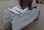 Winda dekarska budowlana STEINWEG (126) Długość 14 m z napędem linowym to najpopularniejszy model urządzenia do transportu pionowego, z elementem załamującym. Drabina kompletna – sprawna. Konstrukcja ramy aluminiowa. Winda sprawna gotowa do użytku. Opis produktu: – zasilanie 230 V, – moc 1,2 kW, – szerokość ramy 62 cm (wymiar zew.), – szerokość ramy 54 cm ( wymiar wewnętrzny), – grubość profila ramy 10 cm, – max długość ramy po złożeniu 14 m . Zestaw składa się: 6 szt. Ram szynowych 2,0 m 1 szt. Rama szynowa 1,0 m załamanie segment górny z rolką zwrotną , wózek platforma uniwersalna – platforma o wymiarach: D/S/W 94 x 62 x 38 cm, – przewodowy pilot obsługi windy dekarskiej, – dodatkowa krańcówka do rozłączania wózka na zadanej wysokości. Istnieje możliwość dokupienia elementów przedłużających 2 i 1 metr , załamania szynowego 20-45 stopni , lub innych elementów drabiny GEDA, BOCKER, Steinweg. Cena netto: 9.900 zł