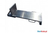 Profesjonalny wózek transportowy połaciowy – aluminiowy BOCKER DZV 200- F. Wózek transportowy do elementów pokrycia dachowego (dachówek), przesuwany wzdłuż połaci dachowej po łatach. Jest to wózek do transportu, który usprawnia wykonywaną pracę oraz poprawia bezpieczeństwo. Niezbędny przy wszelkich profesjonalnych pracach dekarskich. Bardzo lekki, wykonany z aluminium, dzięki szerokim rolkom nie wymaga regulacji na łatach. Stan bardzo dobry jak nowy – użyty w celach prezentacyjnych. Opis produktu: – wózek wykonany z aluminium, – rolki o długości 36 cm, – rolki łożyskowane, – długość całkowita wózka 140 cm, – szerokość całkowita wózka 62 cm, – wysokość całkowita wózka 43 cm, – wymiary użytkowe: (D/S/W) 112 x 45 x 32 cm, – udźwig 200 kg, – waga około 14 kg Cena netto: 1.490 zł Posiadamy w ciągłej sprzedaży różne: drabiny dekarskie, windy budowlane, dźwigi Aktualnie posiadamy: -drabiny dekarskie: 20 sztuk -windy budowlane: 9 sztuk -mini-dźwigi budowlane: 6 sztuk