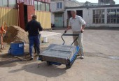 Wózek burkarski do kostki brukowej MIMAl WBR Wózek brukarski – WBR Wózek brukarski jest przeznaczony do przewożenia całych pionowych warstw kostki z palety do miejsca pracy. W urządzeniu zastosowano koła pneumatyczne o zwiększonej wytrzymałości, a dzięki specjalnej rolce wózek może wjechać bezpośrednio po dalsze warstwy kostki. Dane techniczne: Szerokość robocza: 610-1050 [mm] Wysokość robocza: 900 [mm] Ładowność: 400 [kg] Waga: 82 [kg]